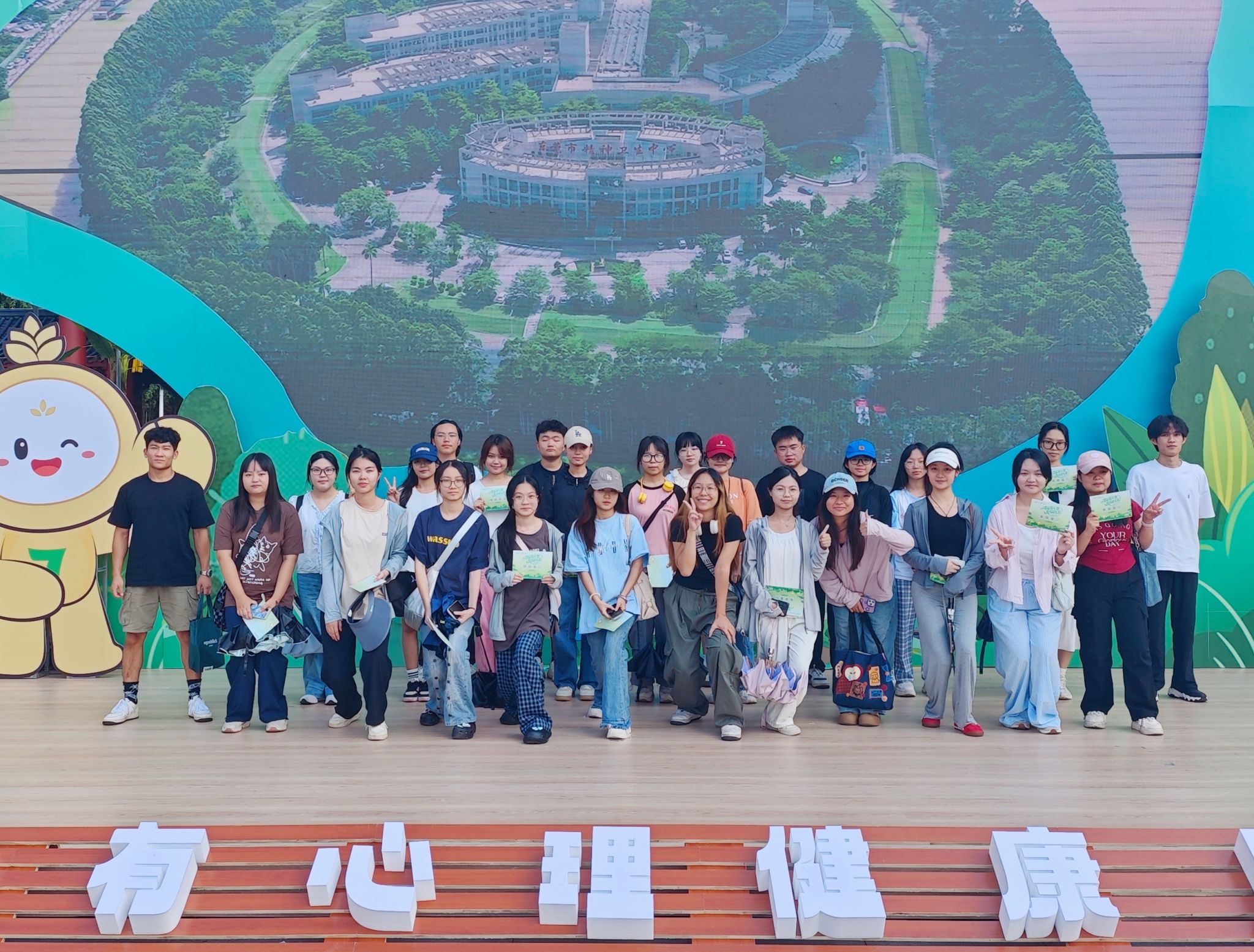 为迎接第34个世界精神卫生日,广州新华学院心理健康教育咨询(以下简称“心理中心”)联合心理健康协会于2025年10月11日组织25名学生代表走进黄旗山公园,参与东莞市第七人民医院(以下简称“东莞七院”)主办的“潮玩心生活”第四届线下开放日活动。这场融合自然疗愈与潮流体验的心灵派对,让同学们在秋日和风中开启了一场别开生面的自我探索之旅。