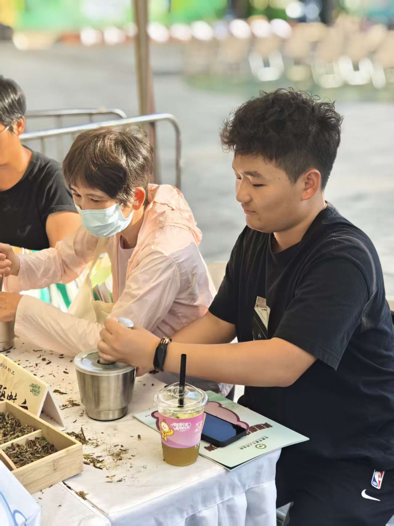 本草心疗站内,紫苏、薄荷的清香与同学们的欢声笑语交织。大家根据中医师指导配伍药材,制作独具个性的安神香囊。让同学们体验到原来中医药材不仅可以zg治病,还能成为随身携带的‘情绪管家’。”一旁的麦小七补能站前,同学们一边品尝特调的情绪特饮,一边与心理咨询师畅聊心事,实现心灵的“即时充电”。