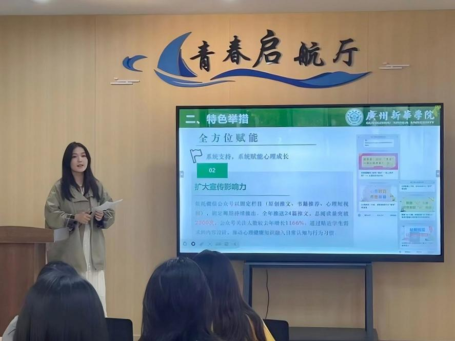 信息与智能工程学院程慧娟老师以“三全育心 赋能成长”为主题,介绍了二级心理辅导站的系统化建设。她分享了“全员参与”的协同育人氛围,整合辅导员、班主任、心理委员、学生骨干等多方力量;通过“心晴茶话会”“解压手工坊”“心灵树洞”三大品牌活动,构建“倾听—表达—疗愈”的情感支持闭环;同时推动心理委员管理规范化,制定《心理委员管理办法》,实现选拔、培训、履职、考核全流程覆盖,让心理工作有章可循、有温可感。
